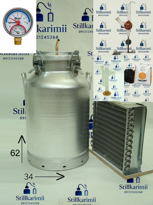 دستگاه عرقگیری 50لیتری سفارشی با کندانسور برقی استیل(فول پک)